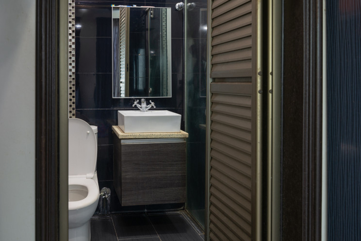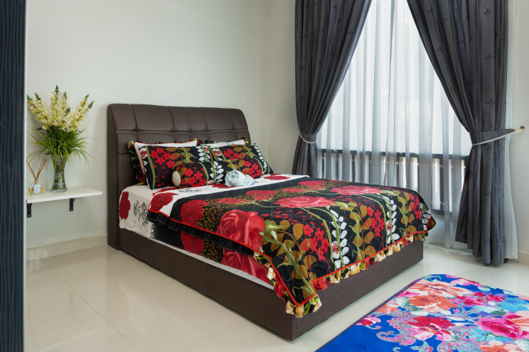 Satu bilik queen-sized bed, tandas di dalam bilik.